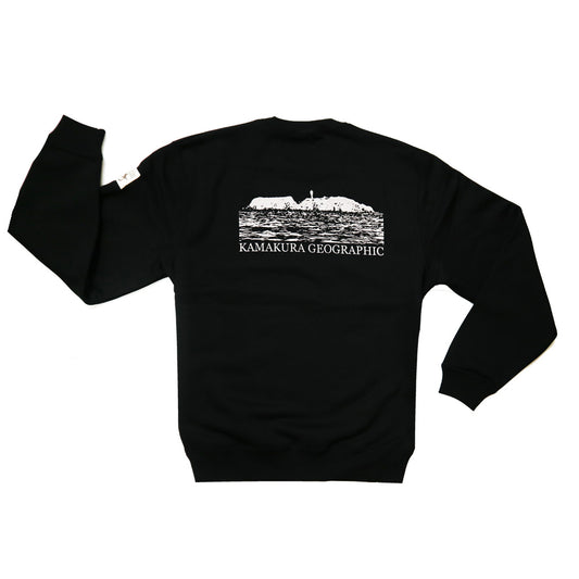 江の島スウェット ブラックボディーにミルクのインク お洒落なトレーナー