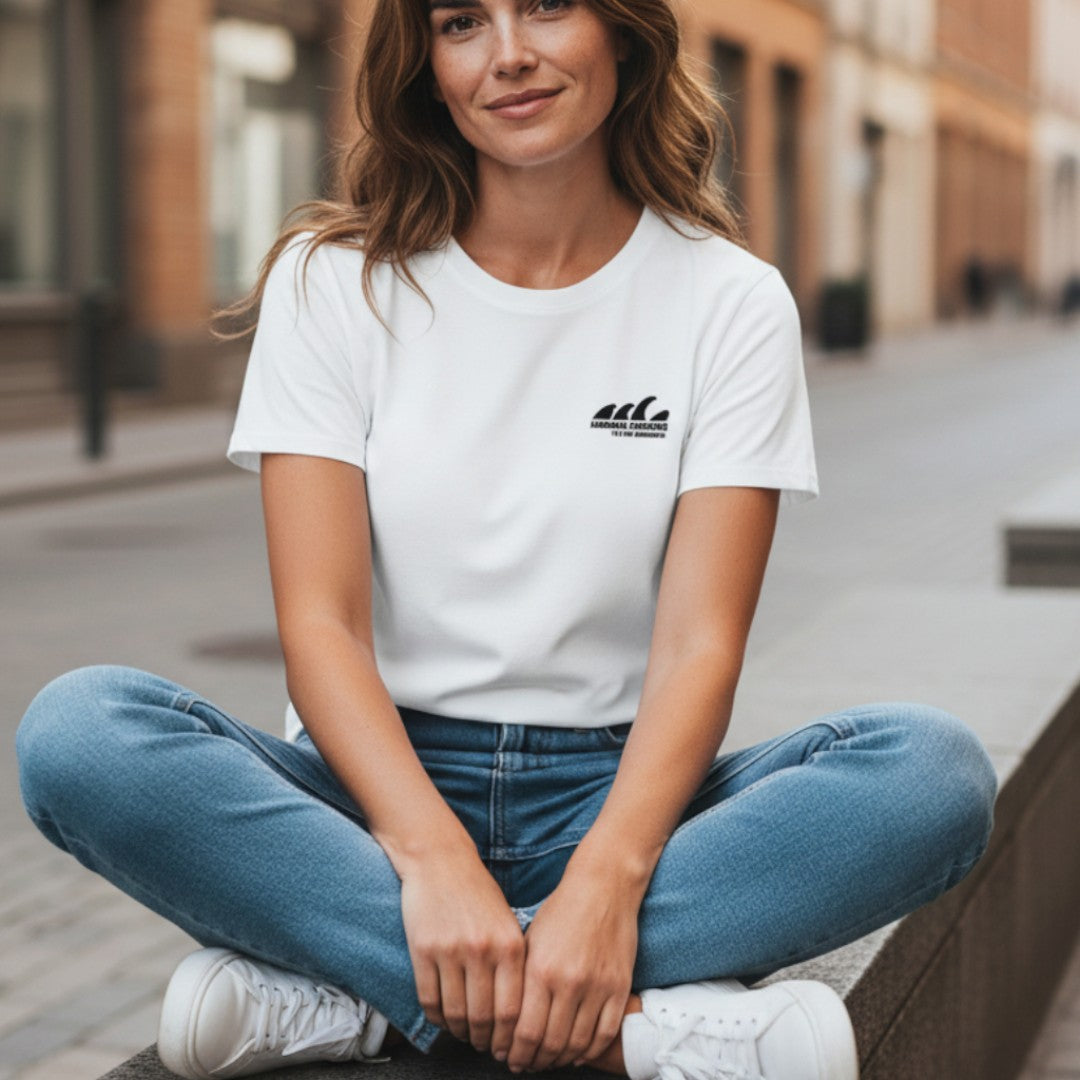 弊社(アムマックス)オリジナルのシルクプリント加工したコットン100%のTシャツです。弊社で一枚一枚丁寧に手作業で刷っています。あくまでもシルクプリントにこだわった、夏に何枚も欲しくなる・着心地の良いTシャツ。