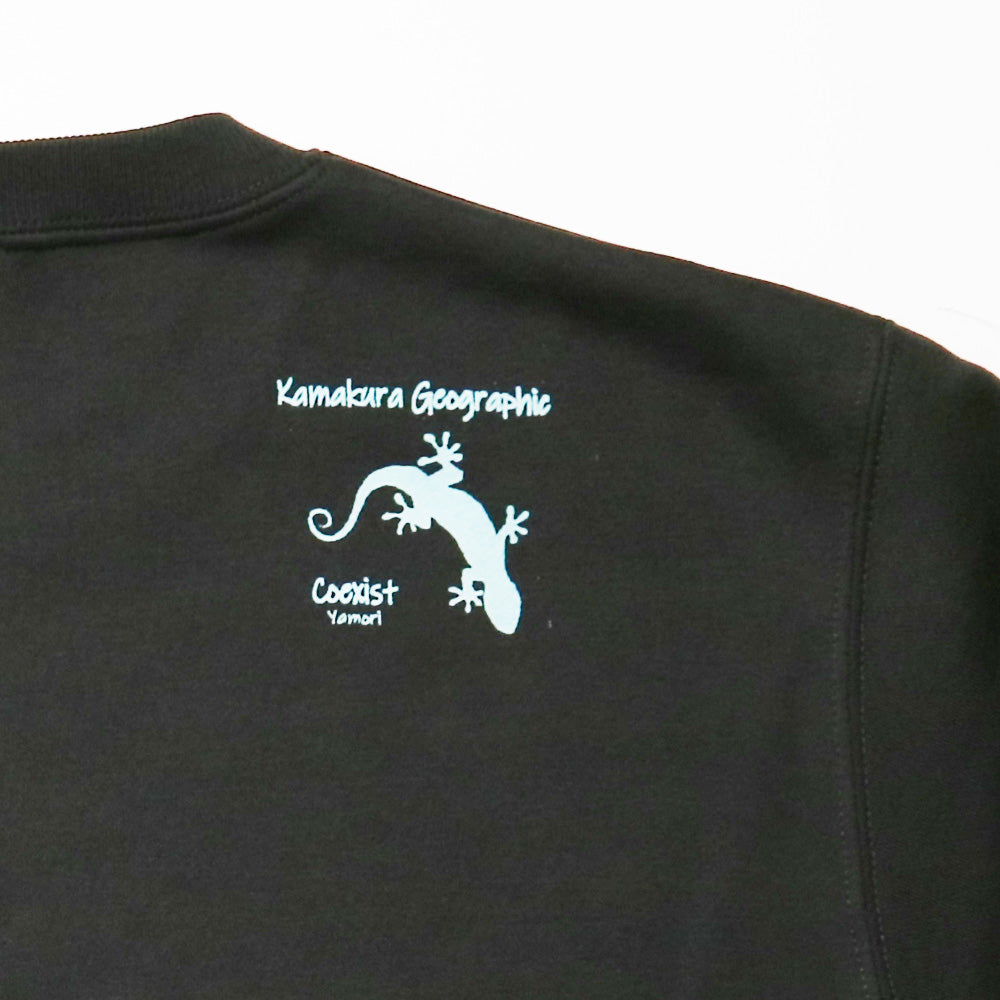 裏地が裏起毛。ショルダーにヤモリのワンポイントデザイン。Tシャツでも人気のスタイル。これからはシンプルなショルダープリント 鎌倉ジオグラフィックはいつもデイ座員の最先端