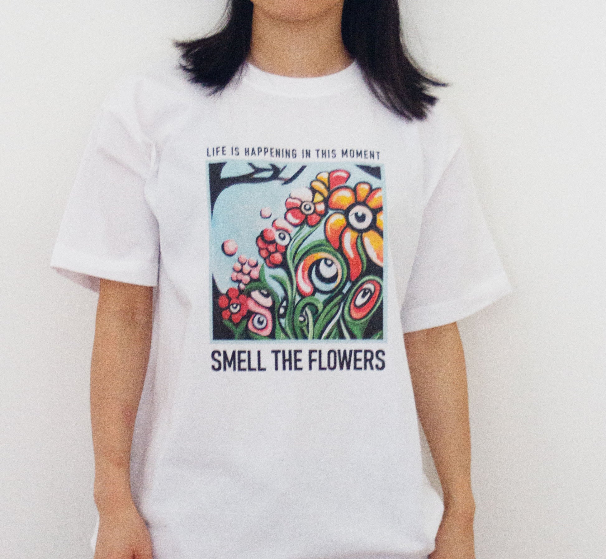 鎌T-Shirts アートT-Shirts/ Smell the flowers 花の匂い Artist : Minasa ハンドライティングアート ベルリンアーティスト