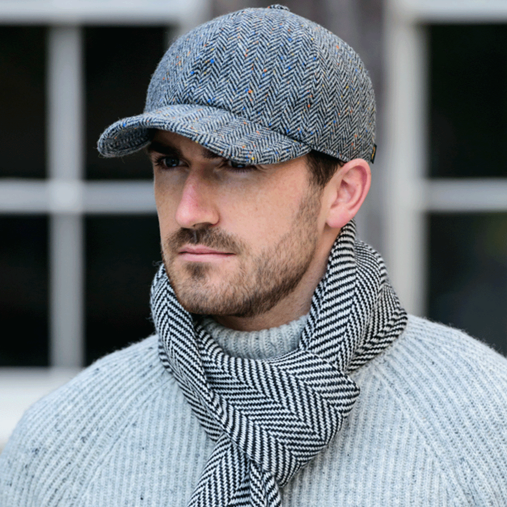 冬のキャップも「マクロス」ならここまでお洒落になります。冬の帽子「Mucros (マクロス)」のお洒落なツイードキャップです。ヘリーボーンパターンの落ち着いたツイードを使用したベースボールキャップ。このくらいこだわったキャップで街を歩きたい。