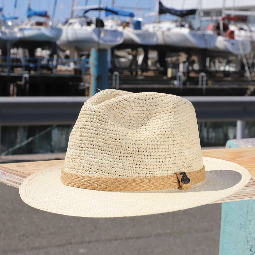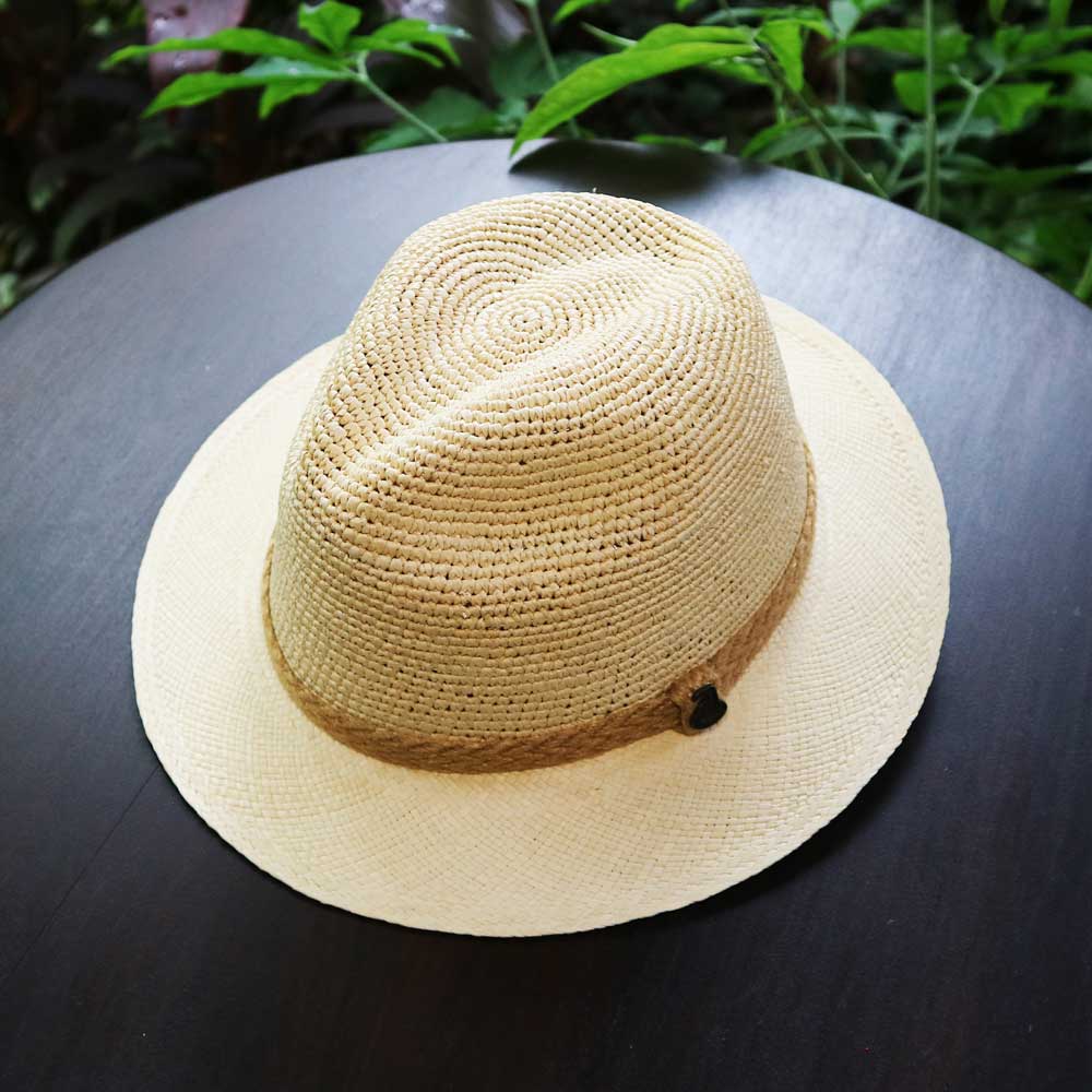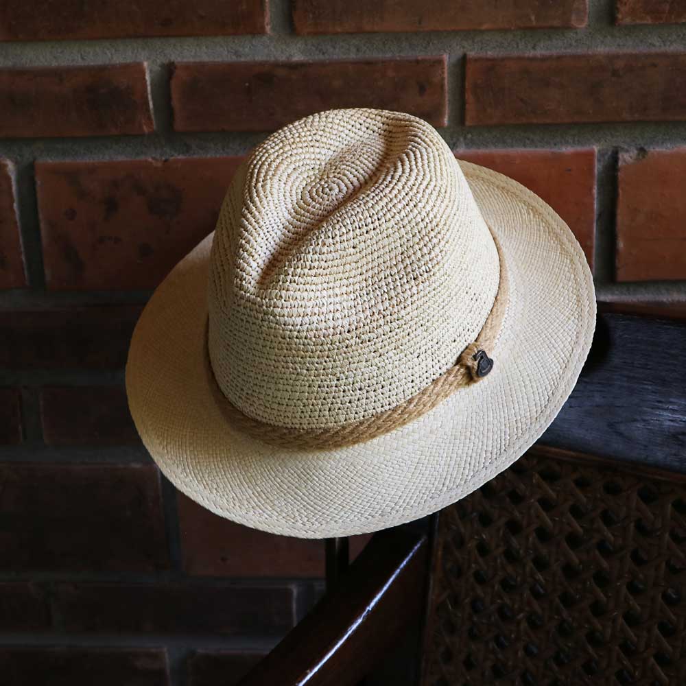 クローシェ編みの本体とクラッシックタイプのブリムを持ち合わせたユニークなパナマハット。パナマハットはちょっとキザっぽくて扱いも面倒?なんて悩んでいる方にはお勧めです。