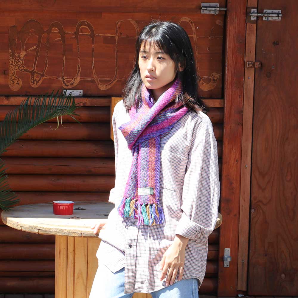 アランテイストは編み込みをより鮮明に表現した独特な編み方の名称。実にしっかりとした質感が伝わるこのアランスカーフ。本当に滑らかで心地よい着け心地です!