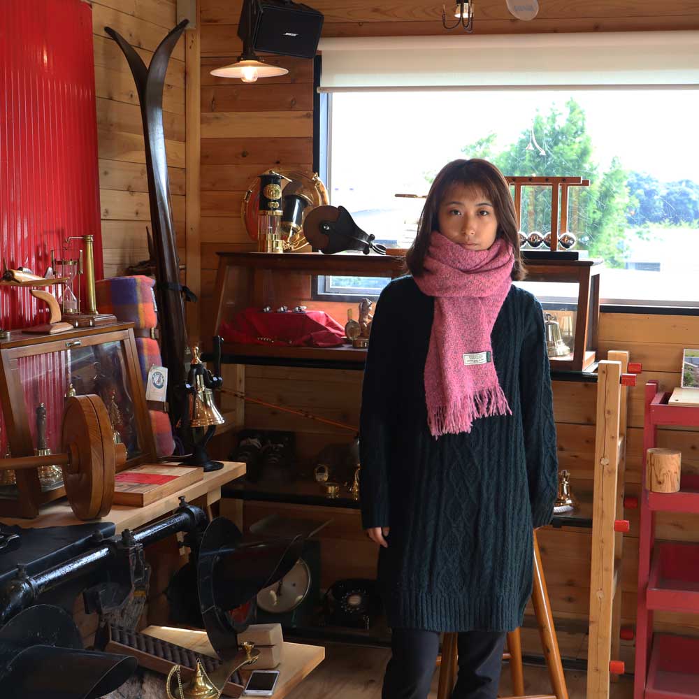 アランテイストは編み込みをより鮮明に表現した独特な編み方の名称。実にしっかりとした質感が伝わるこのアランスカーフ。本当に滑らかで心地よい着け心地です!
