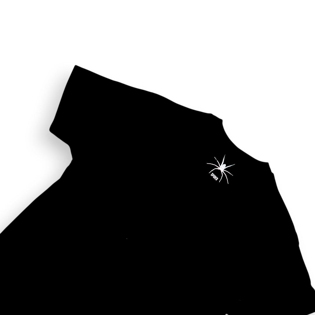 フロントに3匹の小さなクモが左肩にプリントされた粋なデザインTシャツ… バックの首下には大き目なクモのシルクプリント。個性的でお洒落なスパイダーTで 毎日を軽快に過ごしてください。