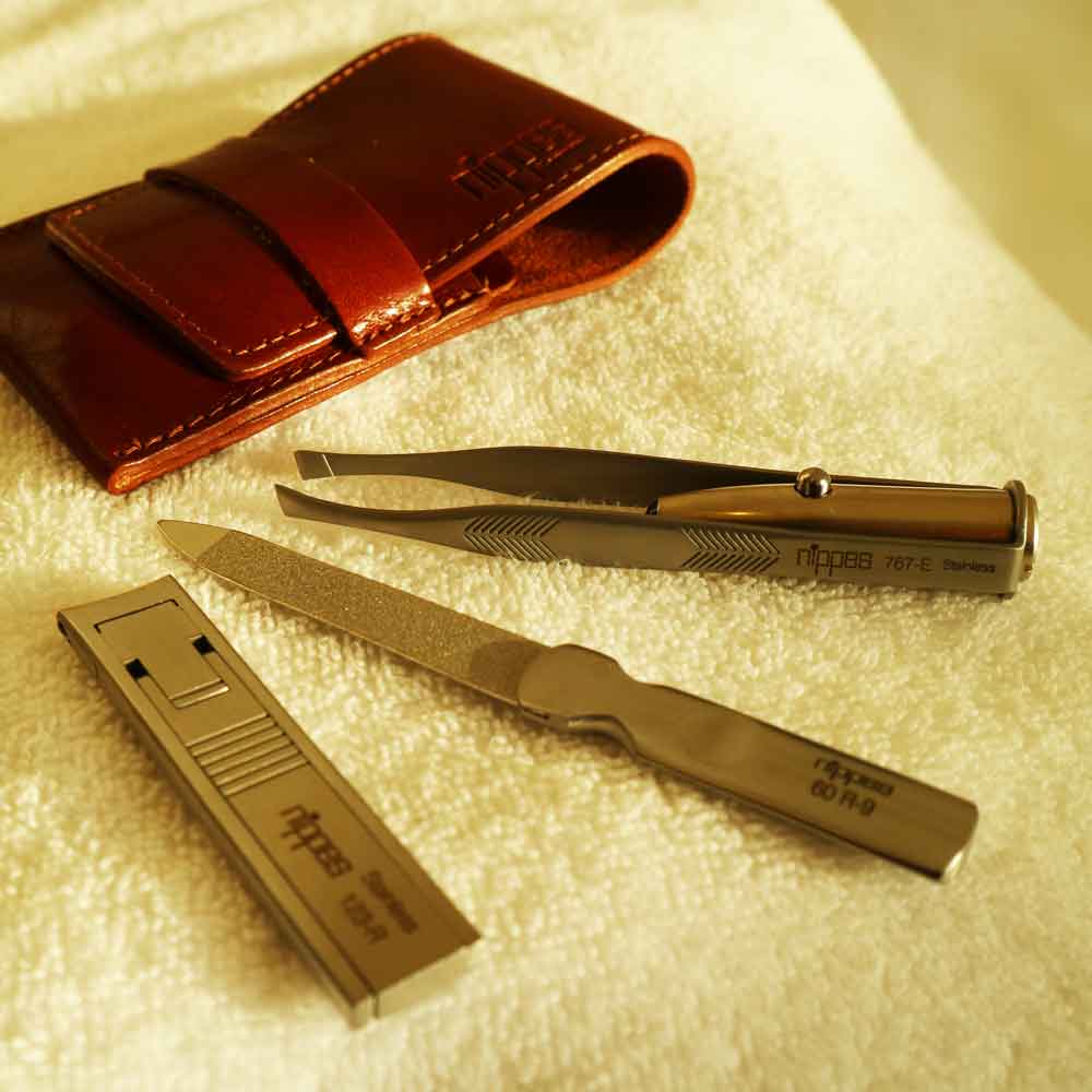 ネールケアセット ポケットネールクリッパー LED トゥイザーズ 爪ヤスリ 牛皮革ケース