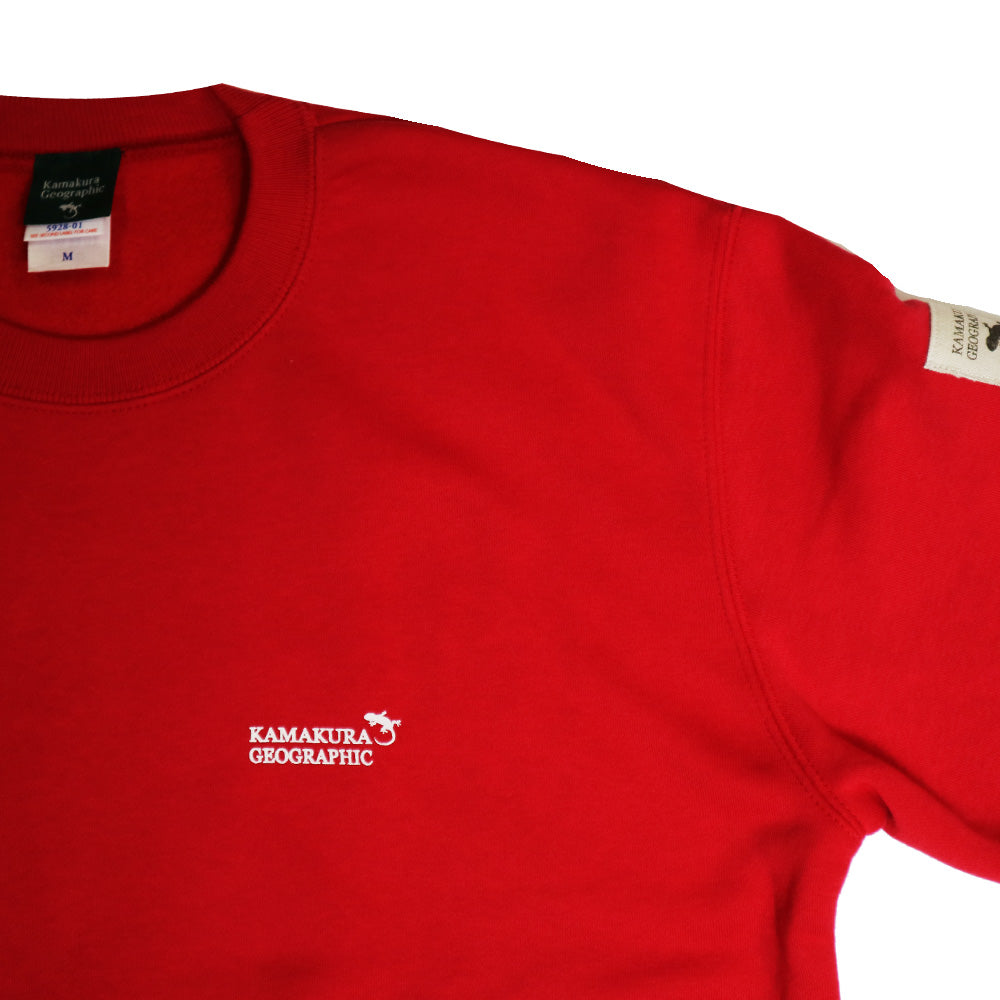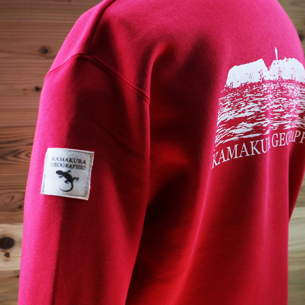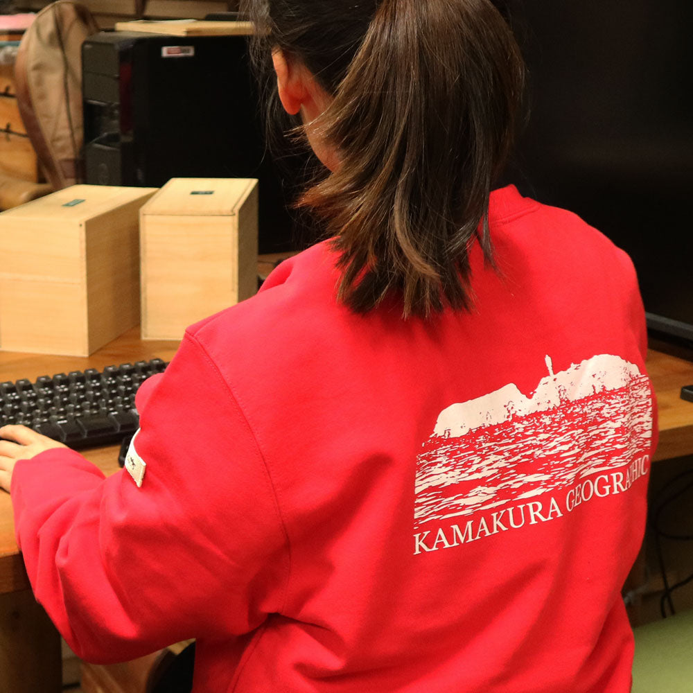 Kamakura Geographic のスエットシャツア裏の仕上げぱ起毛仕上げを使用してプリントしています。耐久性と着心地を重視した製品です。
