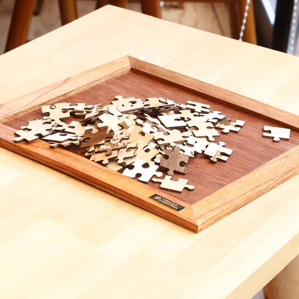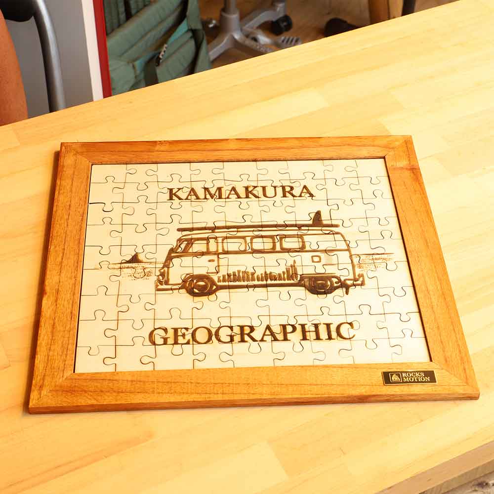 〇ロックスモーション独自の木製品への一つ一つの刻印作業で作り上げられたデザインパズルなので その人に合った多様の贈り物をお選びいただけます。