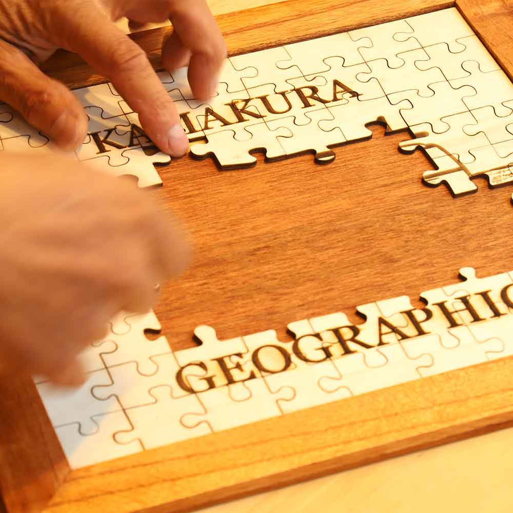 人気の鎌倉ジオグラフィックのコースト(烏帽子岩)デザインのパズル。作り上げて部屋に飾れるお洒落なギフトアイテム