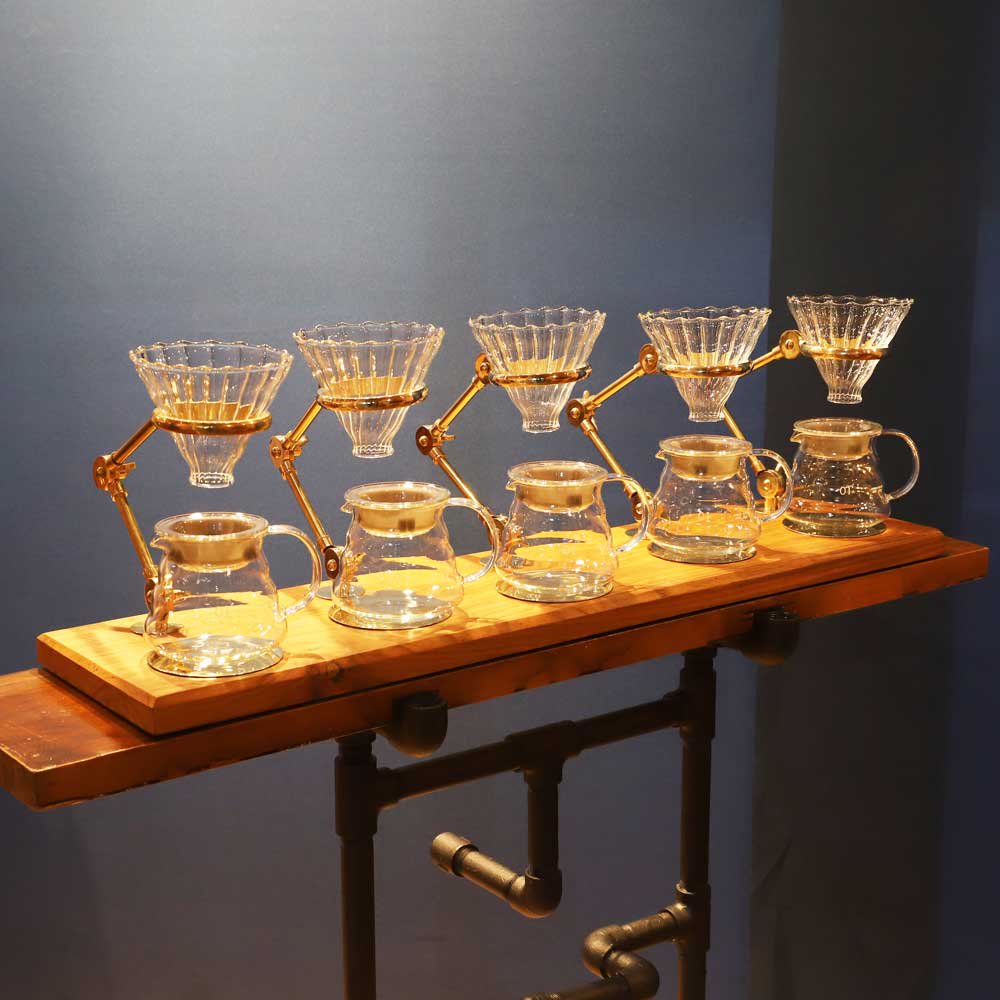 ドリッパーの世界では銘柄とお湯の温度のバランスで味が変わる… そしてあらゆるお客様に同じ時間にクオリティーの高い珈琲をサーブしたい。そんなプロの声から チークウッドの一枚板を採用したプロ仕様のドリッパースタンド。その道を究める人達の為のドリッパー・・・・ 珈琲を入れてもらうならこんな素敵なスタンドを使うショップでひと時を過ごしたい…
