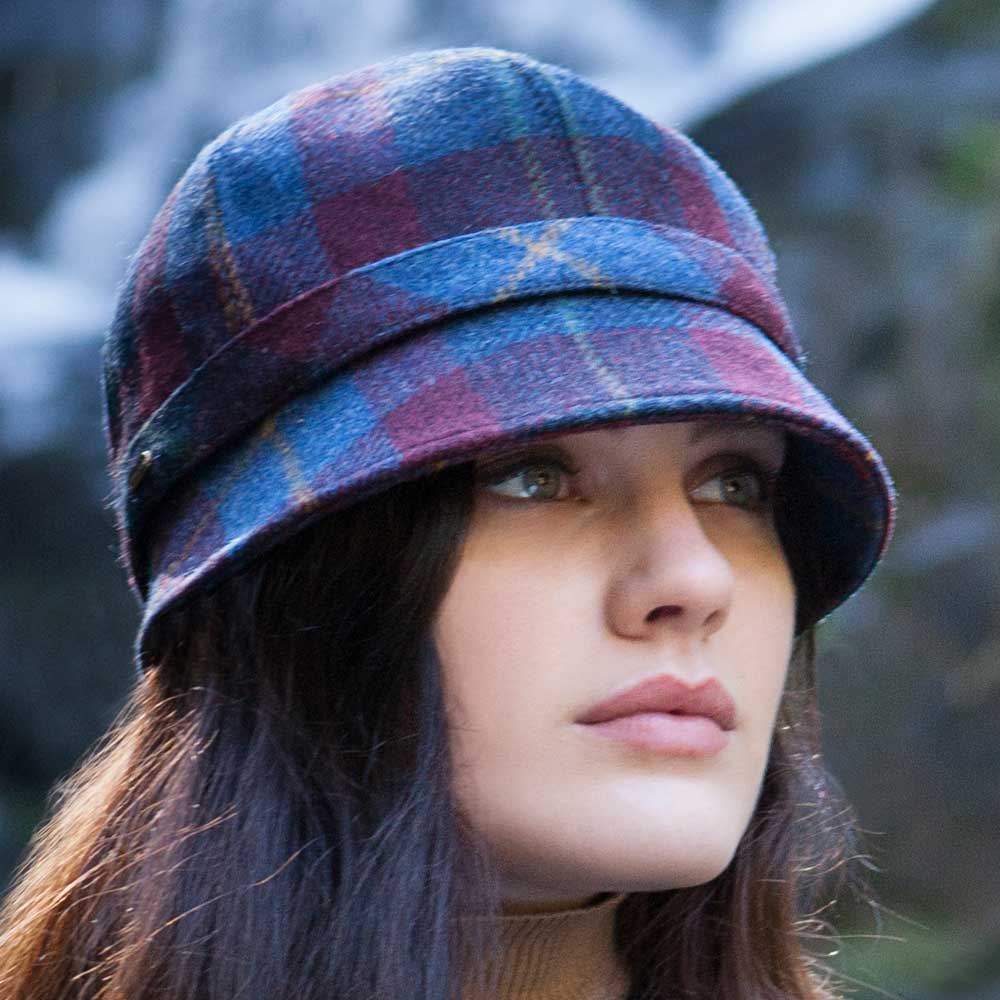 鮮やかで落ち着いたカラーのレディースキャップ。とてもお洒落なクローシェタイプのツイードキャップ。後頭部に生地を貯めて被るととても可愛らしくお洒落感が増します。横の小さなアクセントの花もお見逃しなく!素敵なアイルランドカラーを是非愉しんで戴きたいお洒落なキャップです。
