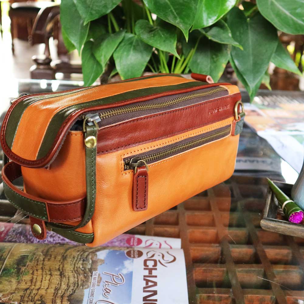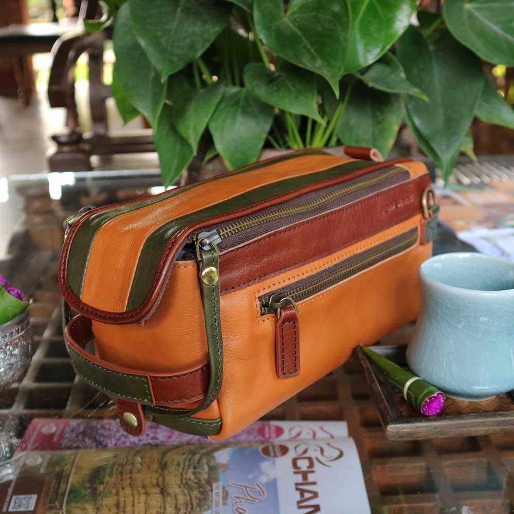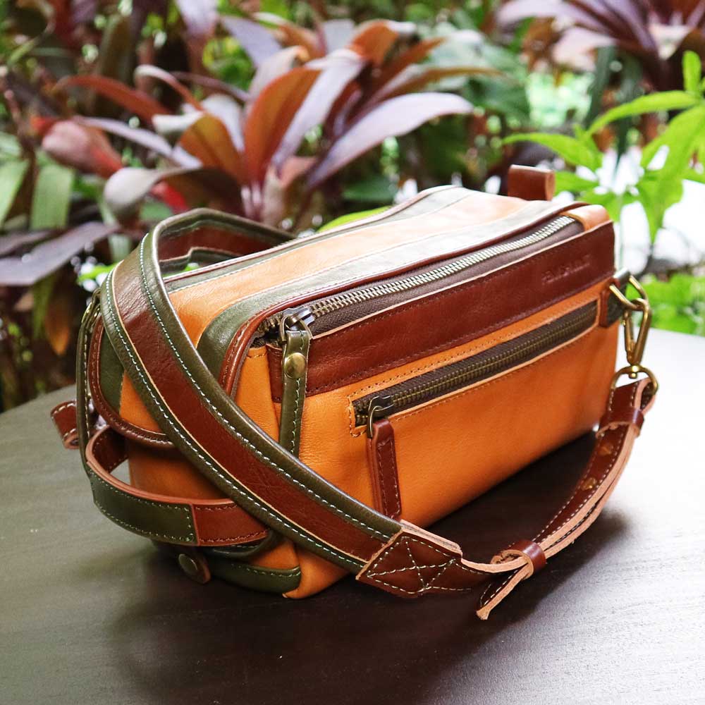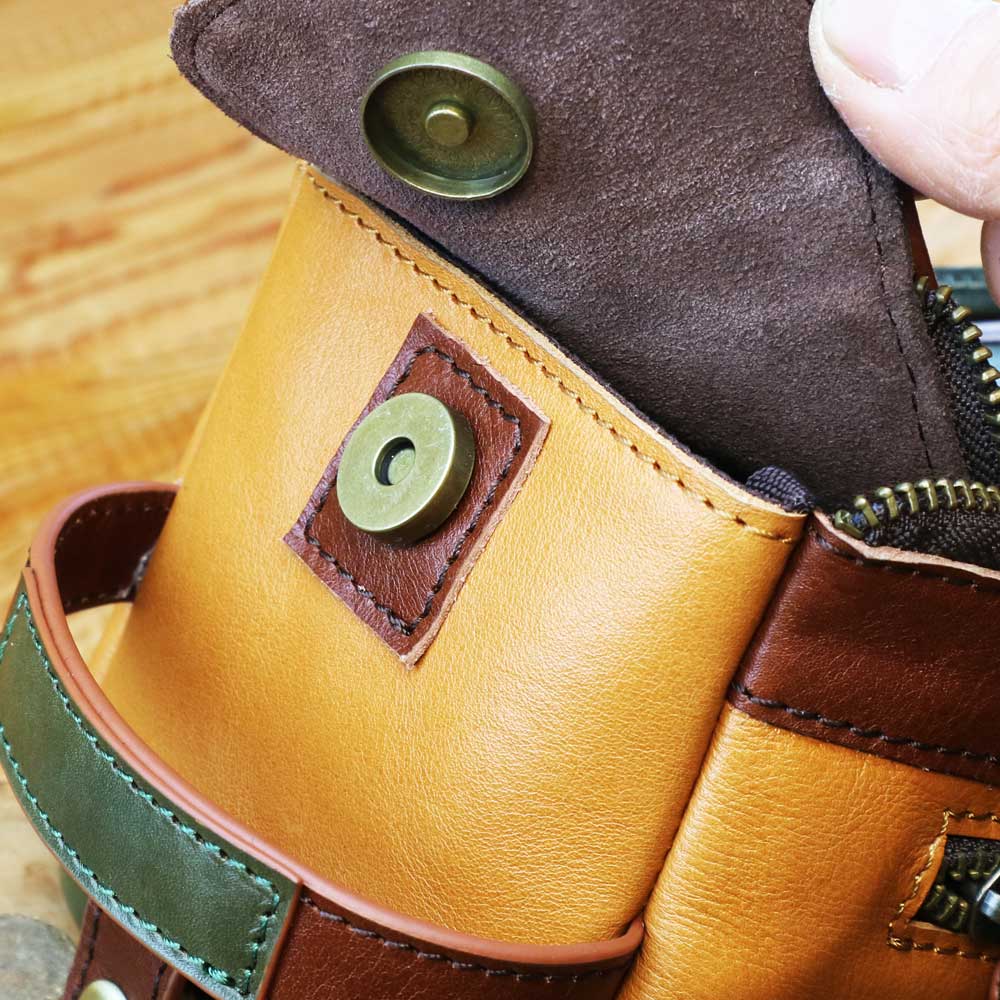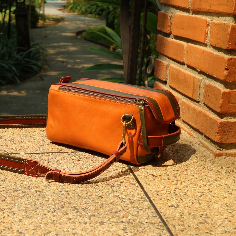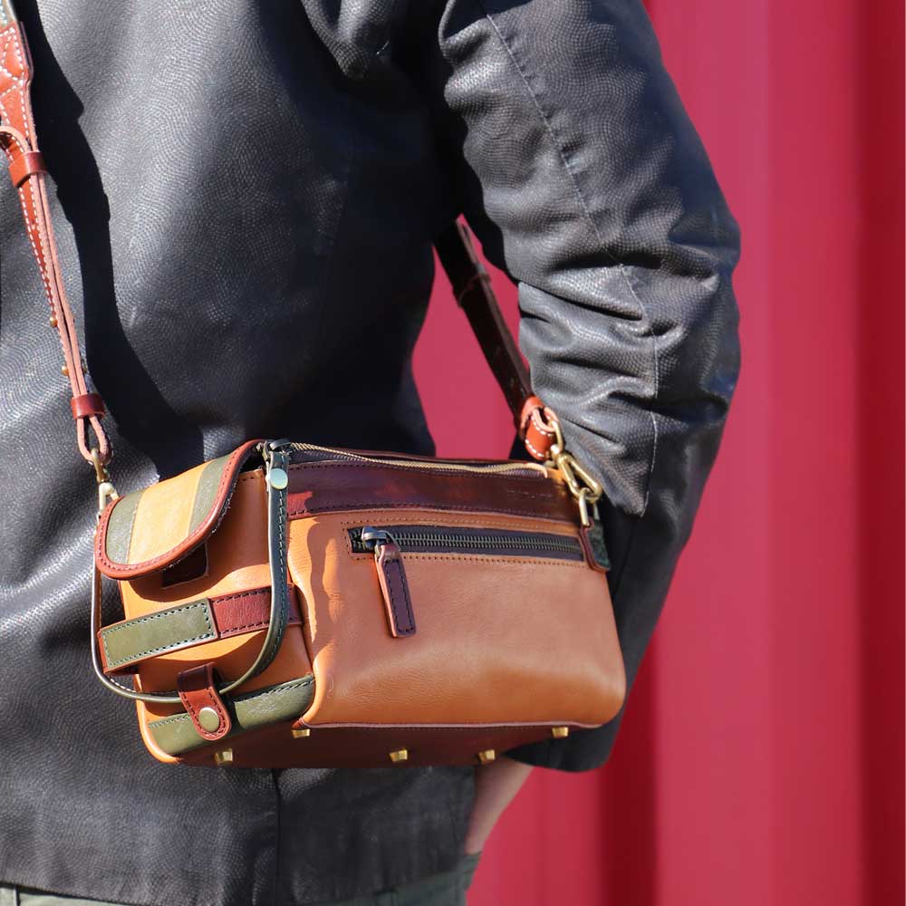 安定したボックスタイプの本体は実に使いやすい 今までにないタイプのバッグをグローブレザーできめ細かに縫製した。