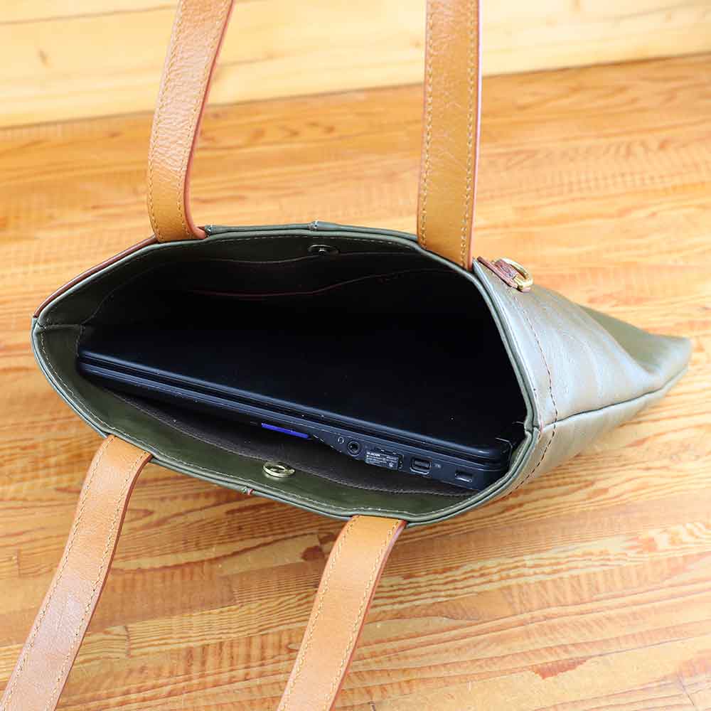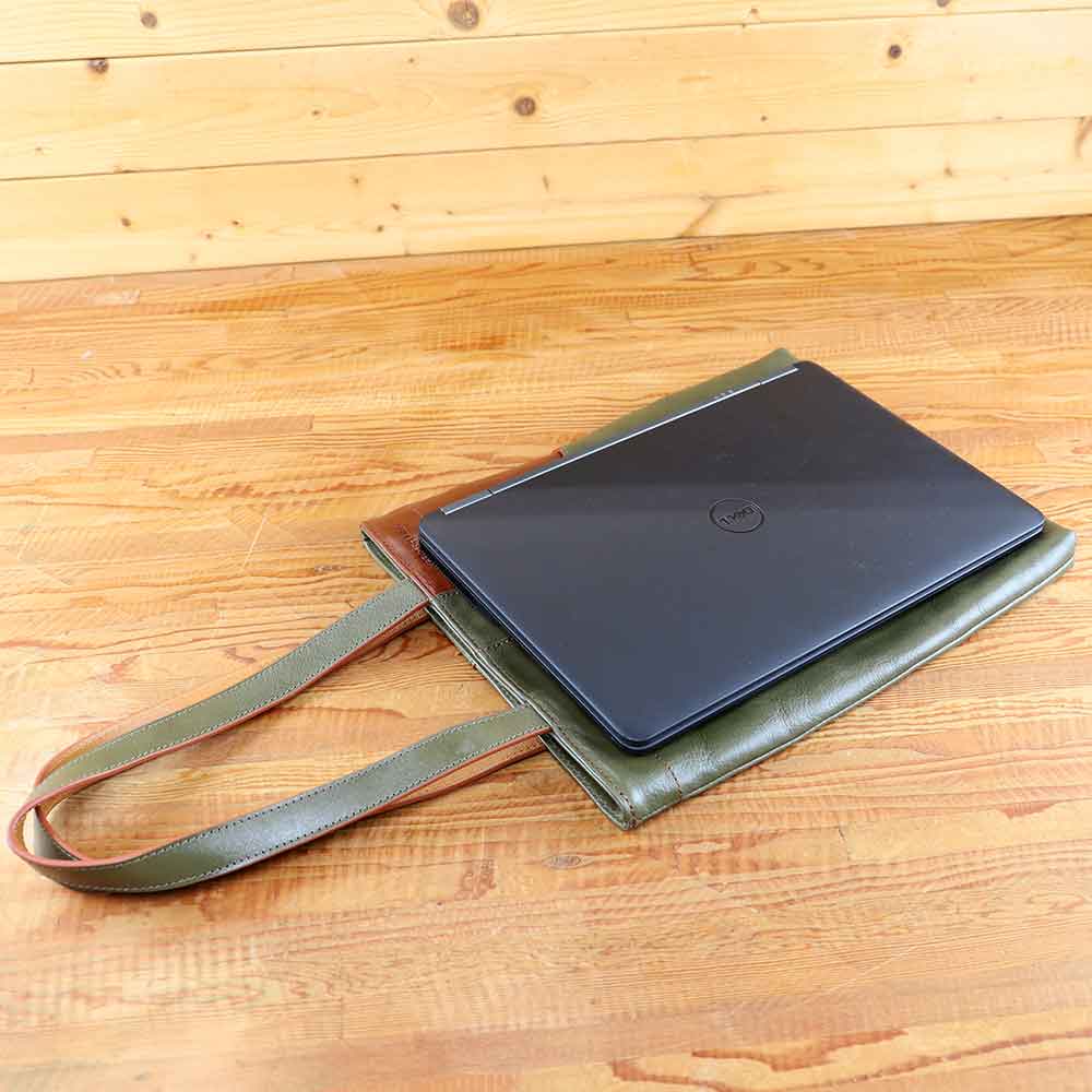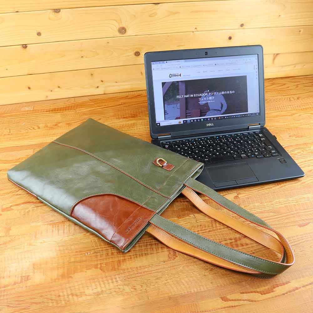 スタイリッシュなフラットタイプのPC タブレットを運ぶ革トート