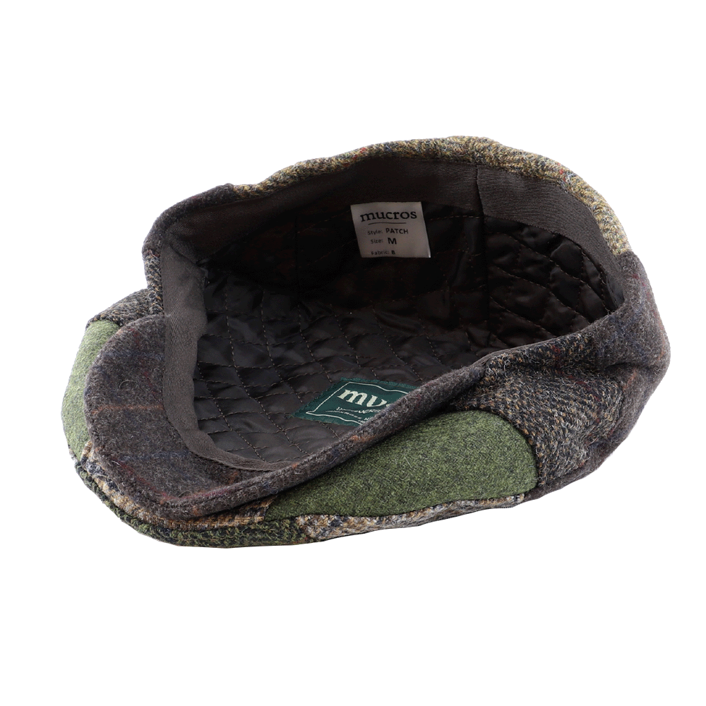 パッチワークで伝統のツイードを贅沢に使用したウールハンチングキャップ。時代に流されない、今の時代だから逆にお洒落な Mucros (マクロス) のツイードハンティング。そのクオリティーの高さは一度手に取るだけで、しっかりと実感できます。キメの細かいしなやかなウールを使用し、最上級の環境の中で縫製されています。