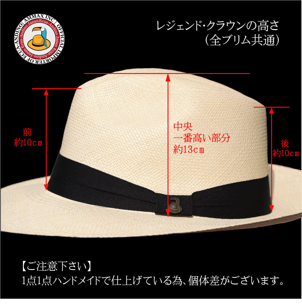 *パナマハットは天然草を使用しておりますのでてっぺん先端をつまんでご使用になりますと破損し易いのでご注意下さい