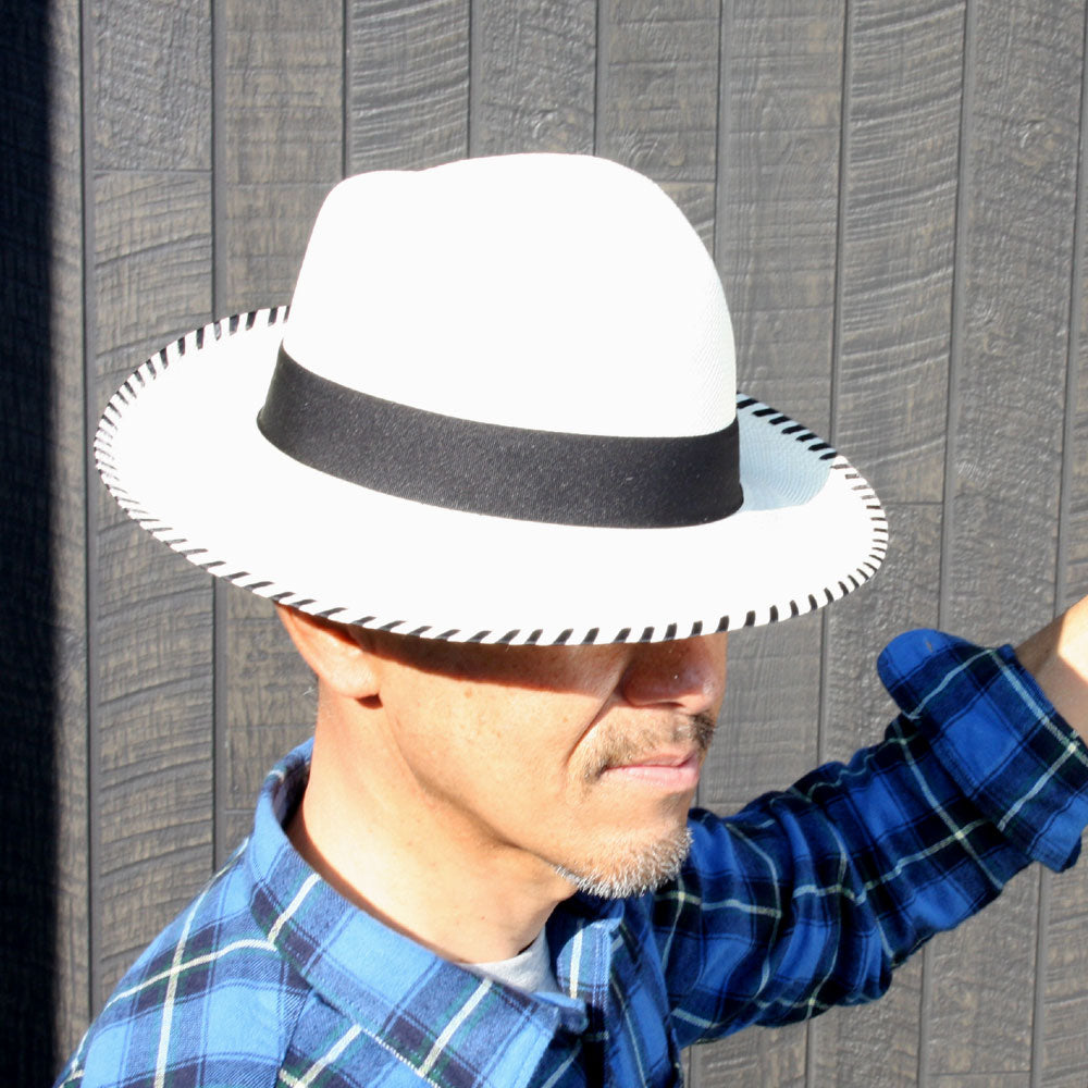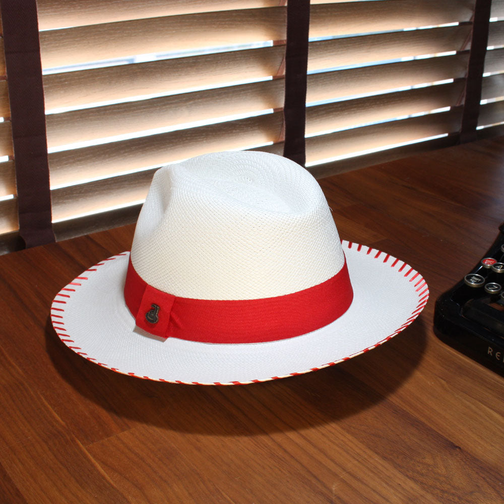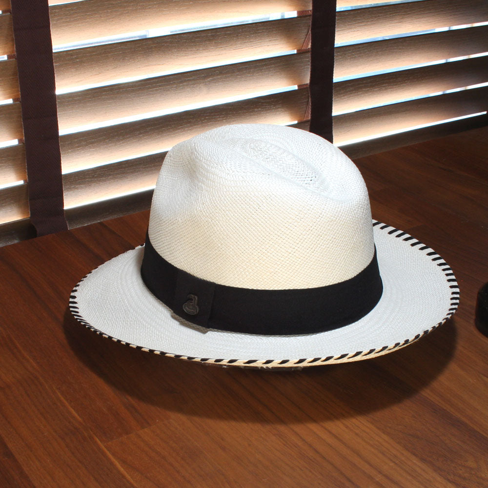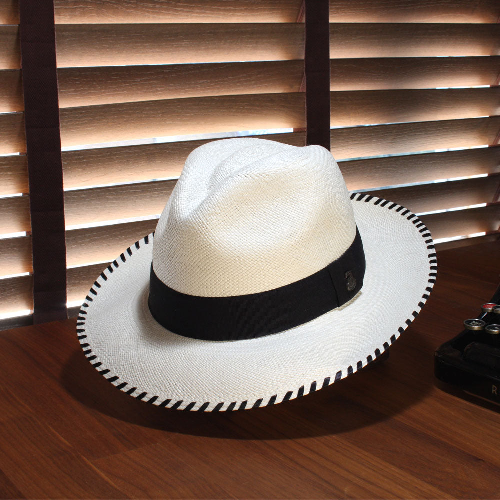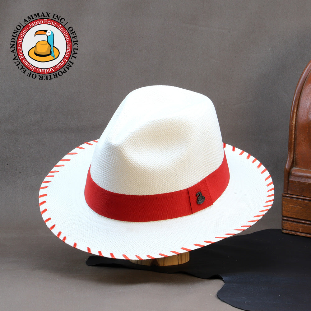 ベースはクラッシックのホワイトモデル。製品完成後にブリムの周りにステッチを施したファッション性を追求したモデル。一時を確実に刻むようなステッチラインがひと際パナマハットを夏の物に変える。個性的なエクアアンディーノの限定特別モデル。