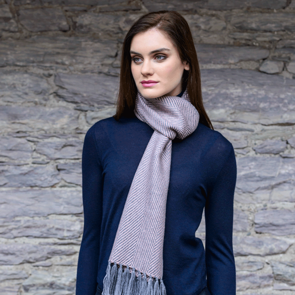 (ディングル)=小渓谷と言う名の通り、実に落ち着いた風合いに仕上げられたメリノウール100%のスカーフ。マフラーには、実は男女の区別はないのですが、 このモデルは男性も女性にも愛用できるなんともシックで大人のテイストを持ち合わしています。