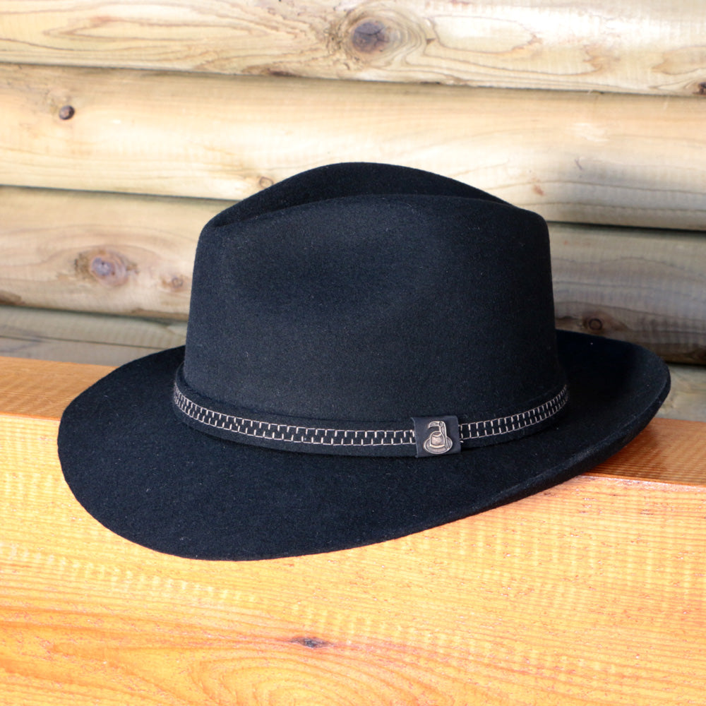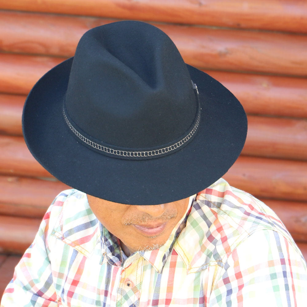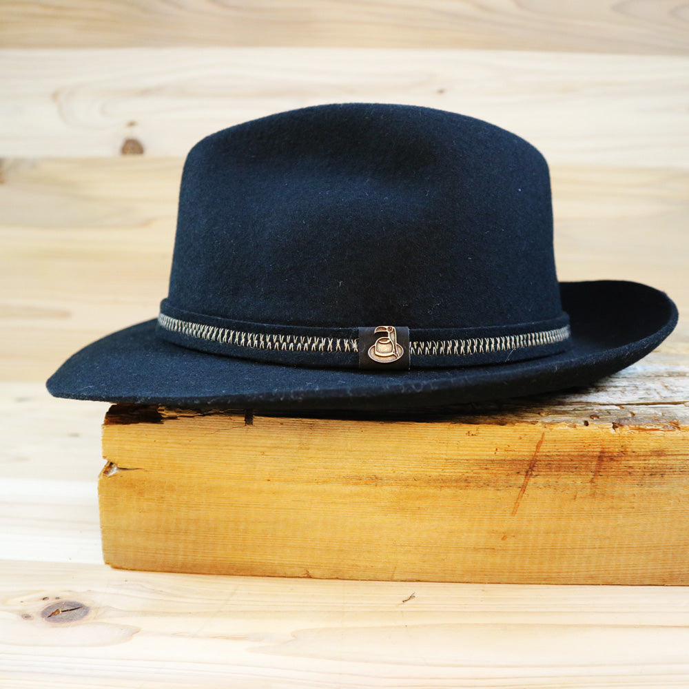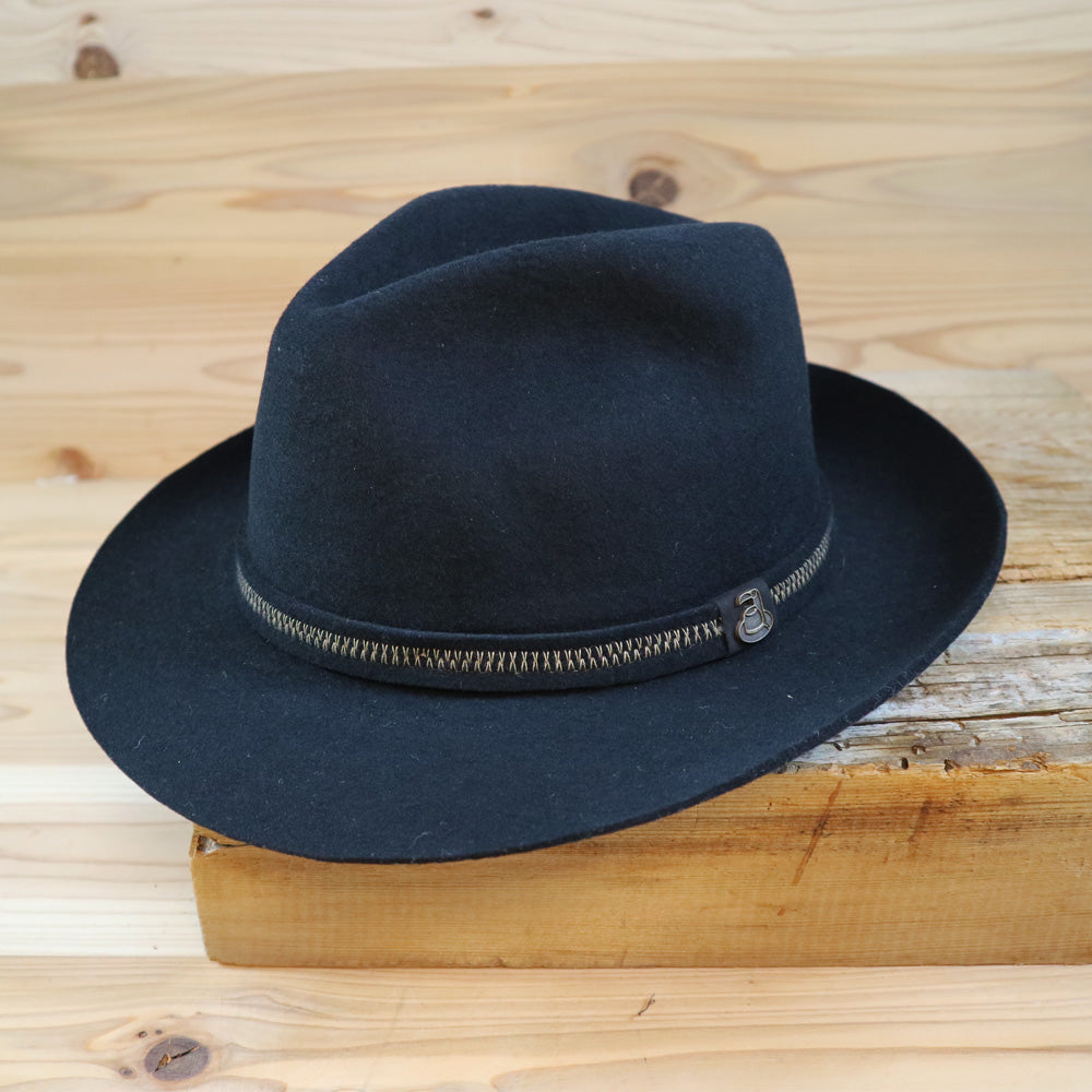 大人のフェルトハット・秋冬の定番ウールハット】エクアドル産【Ecua_Andino / ロックス・ブラック・ウールフェルトハット】ビジネスにもカジュアルでも大活躍 南米アンデス山脈の上質な羊毛を使用したフエルトハット 手触りの良い ギフトに最適