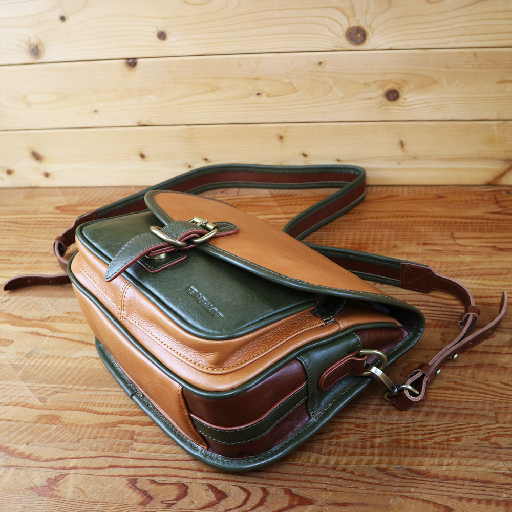 まさかのこの価格 今季発売されたばかりのカートリッジバッグ 英国テイストいっぱいの弾薬入れ式のショルダバッグが一点のみこの価格でご提案。安いです 本革です。 定番品の前に出てきたカウンタサンプルで パネルの色の手直しなどあっただけで特にそのほか不都合あありません。